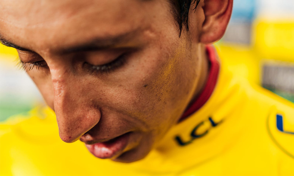 When a childhood dream is achieved. Egan Bernal pulls on the iconic yellow jersey for the first time in his career.