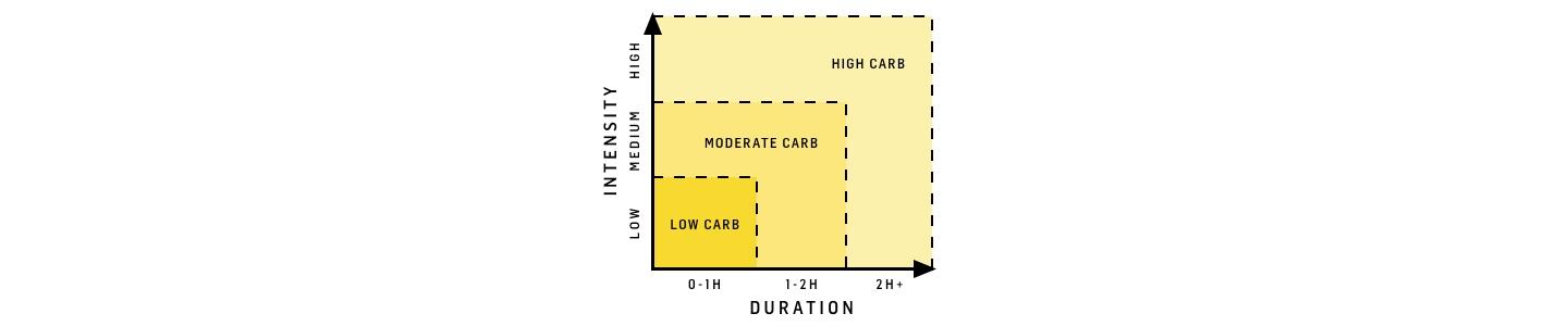La quantité de carburant à consommer varie en fonction de la durée et de l'intensité de l'entraînement. En général, si l'on considère la durée de l'exercice, pour un exercice de plus de 60 minutes, il faut consommer 30 à 60 g de glucides par heure. Pour un exercice d'une durée comprise entre 90 minutes et 2 heures, vous pouvez augmenter cette quantité à 60-90 g de glucides par heure. Pour un exercice d'une durée de 2,5 heures ou plus, vous pouvez passer à 80-120 g de glucides par heure.