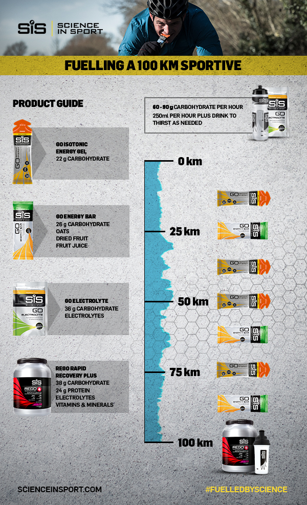 Below you’ll find a handy infographic to help fuel 100km on the bike. Our best advice is to eat little and often and don’t leave big gaps between feeds. You can mix your fuelling up between drinks, solids and gels to keep things interesting.