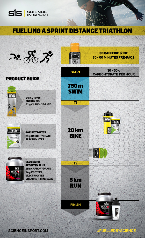 Just because it has sprint in the title it doesn’t mean that this event will be over quickly. Fuelling is still important for a sprint triathlon, you just don’t need the same quantities as an Olympic triathlon or ironman. The message here is simple. Stay hydrated and start the race well fuelled. It’s also easiest to take on most of your fuel on the bike or in transition.